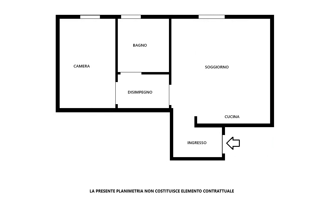 L’immobile è composto da: ingresso, soggiorno con angolo cottura, disimpegno che ci conduce alla zona notte composta camera matrimoniale e bagno padronale.