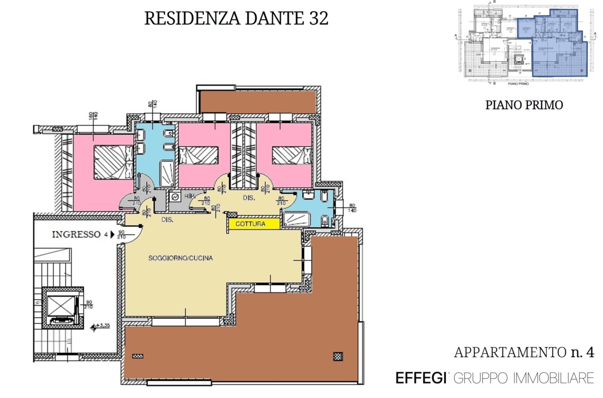 Appartamento 4: QUADRILOCALE al piano primo con ampio terrazzo di Mq. 57,