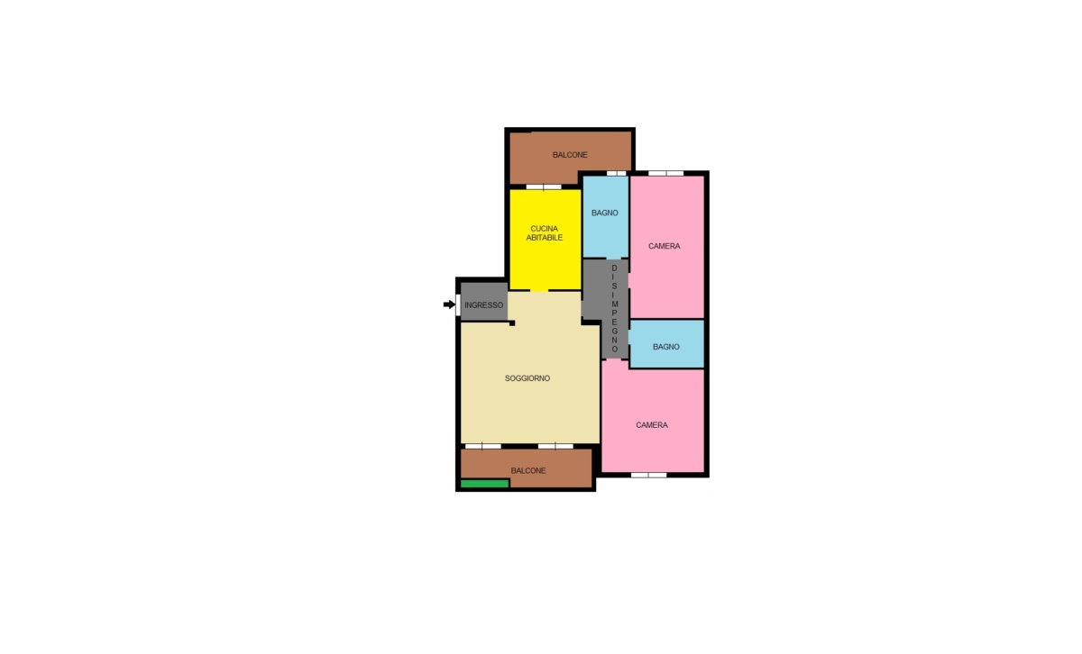 L’immobile è composto nella zona giorno dall’ingresso sull’ampio soggiorno con balcone e dalla cucina abitabile anch’essa completa di balcone.